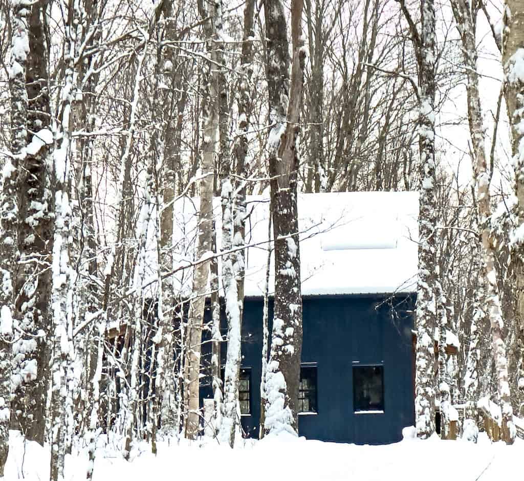 Instead, you’ve got a warm cabin, a frozen pond, and miles of trail in every direction.